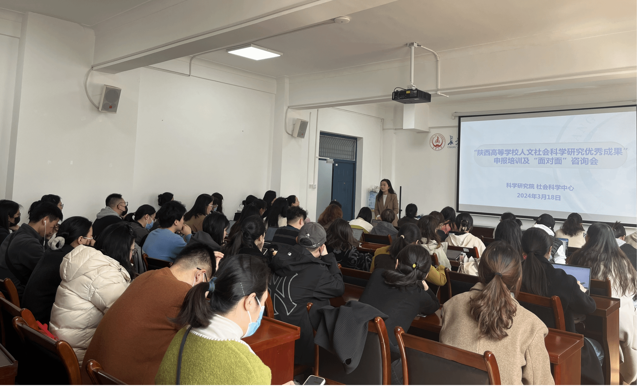 3月18日下午,科学研究院在南校区北院基础楼408会议室组织召开2024年度陕西高等学校人文社会科学研究优秀成果申报培训及“面对面”咨询会。各申报人、有意向申报人文社科奖励的老师、科学研究院社科中心工作人员等70余人参加培训会。培训会由科学研究院社科中心副主任石赟琦主持。